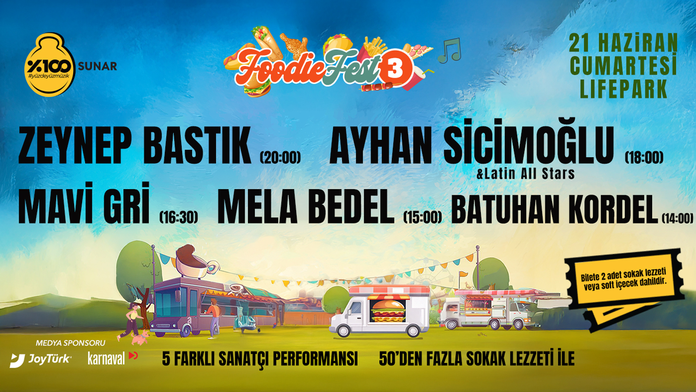 Eğer siz de sokak lezzetleri ve yeni tatlar keşfetmekten keyif alan ve müzik dolu bir festivali seven bir foodie iseniz, FoodieFest 3 u kaçırmayın.